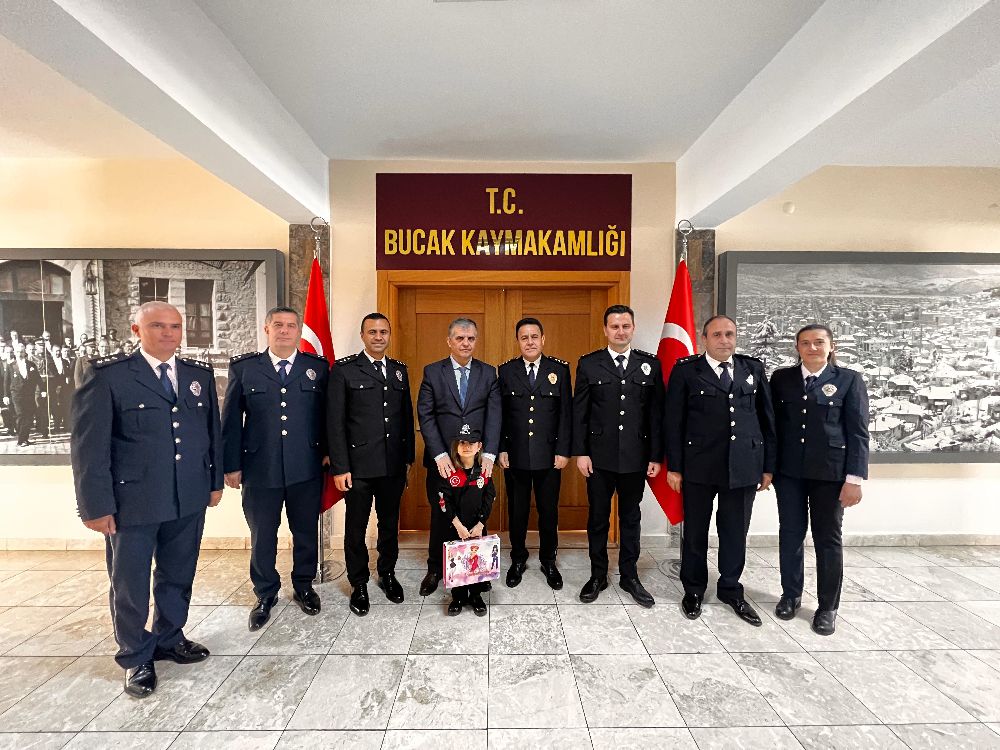 Programdan sonra Bucak Kaymakamı Bayram Gale Bucak İlçe Emniyet Müdürü Nail Çelik ve beraberindeki teşkilat mensuplarını makamında kabul etti.