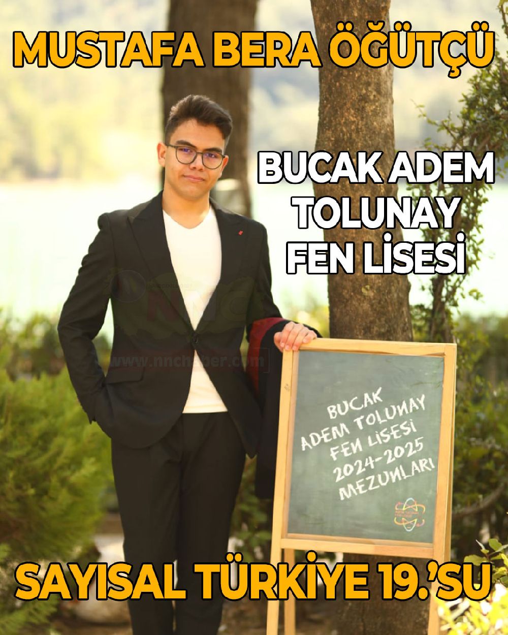 Bucak Adem Tolunay Fen Lisesi öğrencisi Mustafa Bera Öğütçü, YKS sayısal puan türünde Türkiye 19’uncusu olarak ilçeye tarihi bir başarı kazandırdı. Öğütçü’nün aynı zamanda TYT sınavında da 60. sıraya yerleştiği öğrenildi. Başarısının arkasında düzenli çalışma ve öğretmenlerinin katkısı olduğu belirtiliyor.