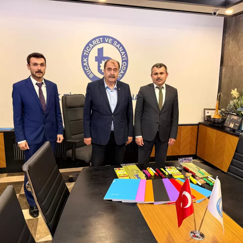 Bucak Ticaret ve Sanayi Odası Yönetim Kurulu Başkanı Hasan Yalçın Meçikoğlu, Türkiye Odalar ve Borsalar Birliği'nin (TOBB) katkılarıyla, Bucak İlçe Milli Eğitim Müdürlüğü tarafından belirlenen 200 ihtiyaç sahibi öğrencilerimize verilmek üzere, kırtasiye malzemelerini Bucak İlçe Milli Eğitim Müdürü Bekir Canavar'a teslim etti.