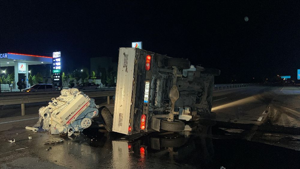Burdur'un Çeltikçi ilçesinde lastiği patlayan tekne motoru yüklü kamyonet devrildi. Kazada 2 kişi yaralandı.