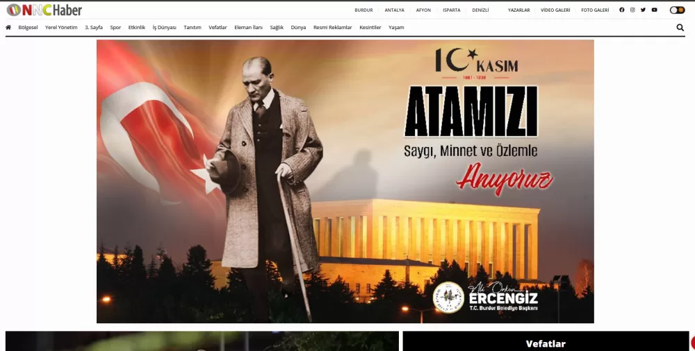 Burdur Belediyesi 10 Kasım Atatürk'ü Anma Banner