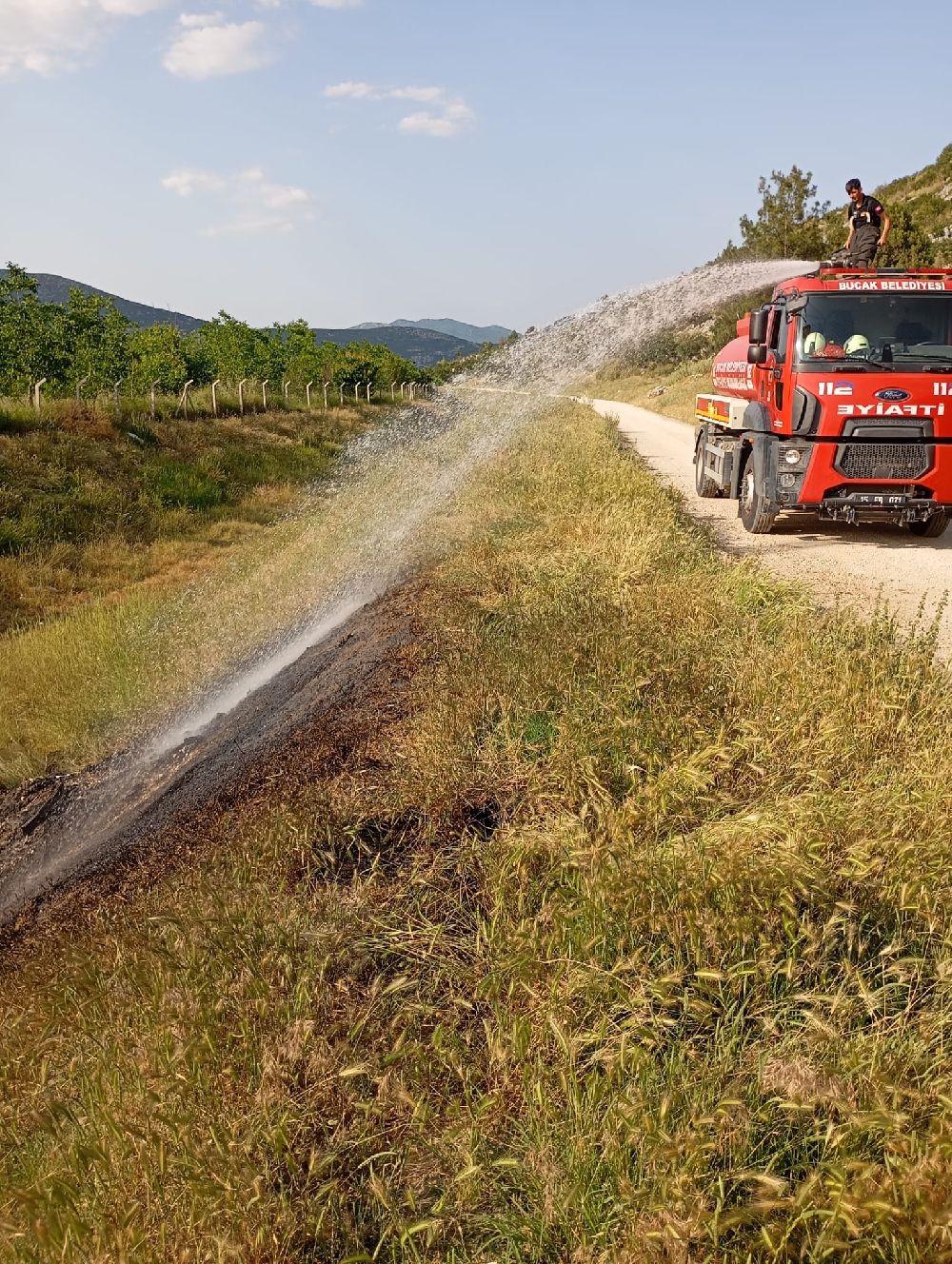 Burdur'un Bucak ilçesinde dere içi ot yangını itfaiye ekiplerinin müdahalesiyle kontrol altına alındı.