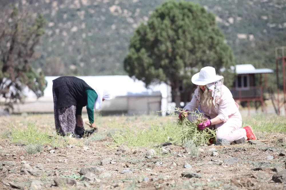 Dedesi rahmetli olduktan sonra ata toprağına geldiğini ifade eden Dr. Ece Aynur Onur, "Ziyaret etmiştim ve özellikle Burdur'da çok ciddi bir kuralık sorunun olduğunu gördüm. Göller yöresi ne yazık ki çöller yöresine dönüşmek üzereydi ki son yıllarda çok sayıda göllümüz kurudu. Bu sorunla mücadele edebilmek için Burdur'da ata toprağımda susuz tarım yapmaya başladım. Bu yıl itibariyle de 8. yılımıza giriyoruz. Çok başarılı bir şekilde 19 çeşit tıbbi aromatik bitki, 9 çeşit gıda ve 6 çeşit baharat ve çay üretimi yapıyoruz" dedi.