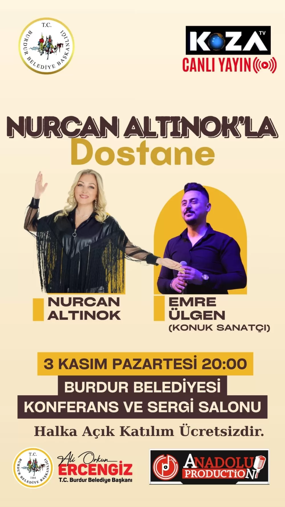 Serinin ilk programı “Nurcan Altınok’la Dostane”, 3 Kasım Pazartesi akşamı saat 20.00’de izleyiciyle buluşacak. Programda sevilen sanatçı Nurcan Altınok, samimi sohbetleri ve canlı performanslarıyla müzikseverlere unutulmaz bir gece yaşatacak.