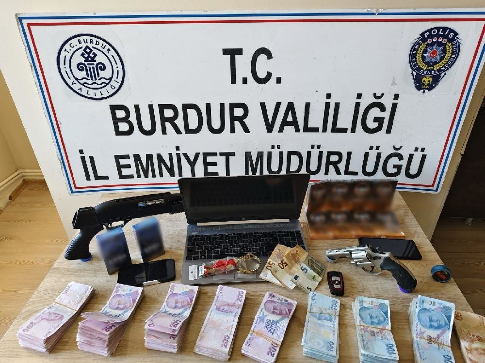 Operasyonda, suça konu çok sayıda belge, dijital materyal (telefon ve tablet), 1 adet pompalı tüfek, 1 kurusıkı tabanca, 1 bıçak, farklı kişilere ait kredi kartları, suçtan elde edildiği değerlendirilen para ve ziynet eşyaları ile uyuşturucu kullanma aparatı ve bir miktar esrar ele geçirildi.