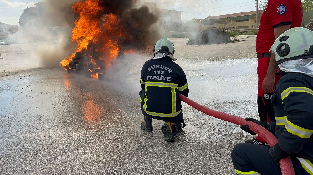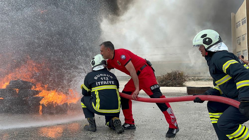 Burdur'da başlayan iki günlük itfaiye eğitiminin ilk günü tamamlandı. 16 bölgeden gelen 96 itfaiyeci, yangınlardan depreme kadar geniş bir yelpazede arama kurtarma tatbikatlarına katıldı.
