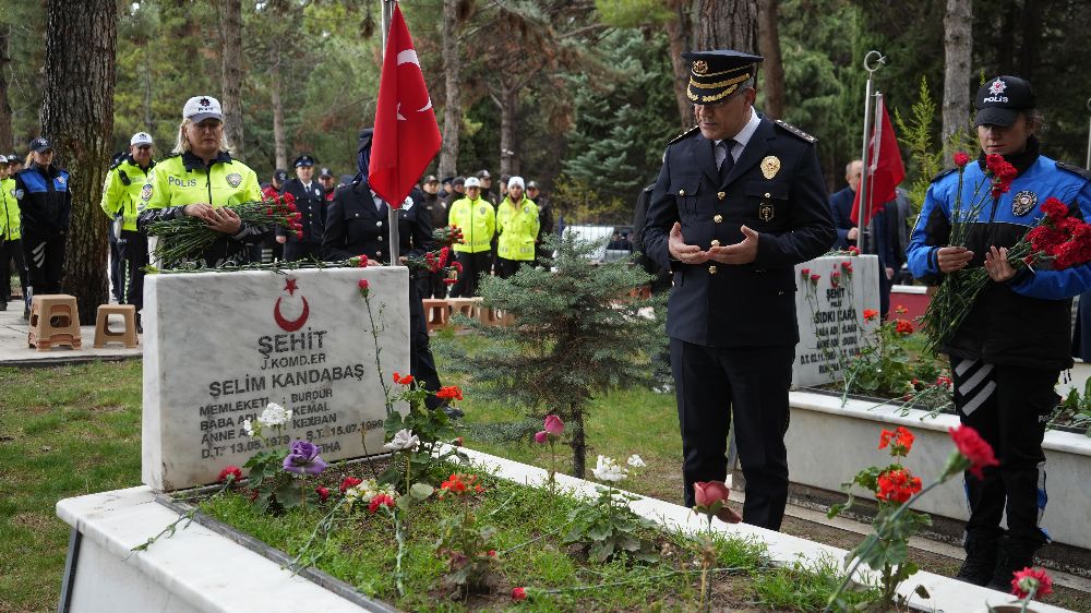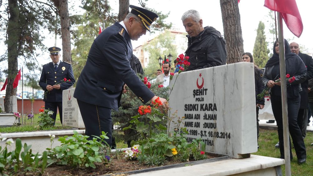 İl Emniyet Müdürü Ahmet Kurt ve emniyet personeli, şehit mezarlarını ziyaret ederek karanfil bıraktı. Şehit aileleriyle yakından ilgilenen Kurt, ailelerle sohbet ederek minnet duygularını iletti. Program sonrası konuşan İl Emniyet Müdürü Ahmet Kurt, "Teşkilatımızın 180'inci kuruluş yıl dönümü münasebetiyle aslında ilk olmamız gereken yerdeyiz. Bütün şehitlerimizden Allah razı olsun. Mekanları cennet olsun, Rabbim gani gani rahmet eylesin. Onların açtığı yoldan bu teşkilat yürümeye devam edecek. Devletin birliği, milletimizin bekası için mücadelemiz sürecek. Bu yolda hepimiz birer namzediz. Rabbim devletimize ve milletimize zeval vermesin. Evlatları olarak, bu büyük kahraman teşkilat mücadelesini sürdürecektir. Bundan herkes emin olsun" dedi.