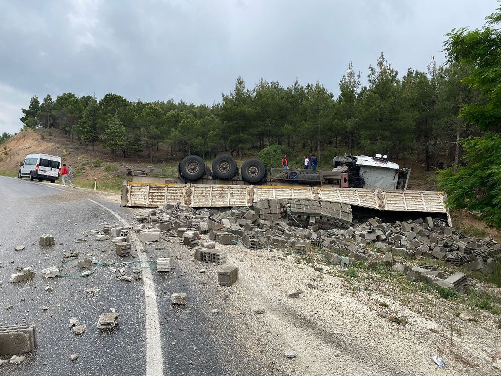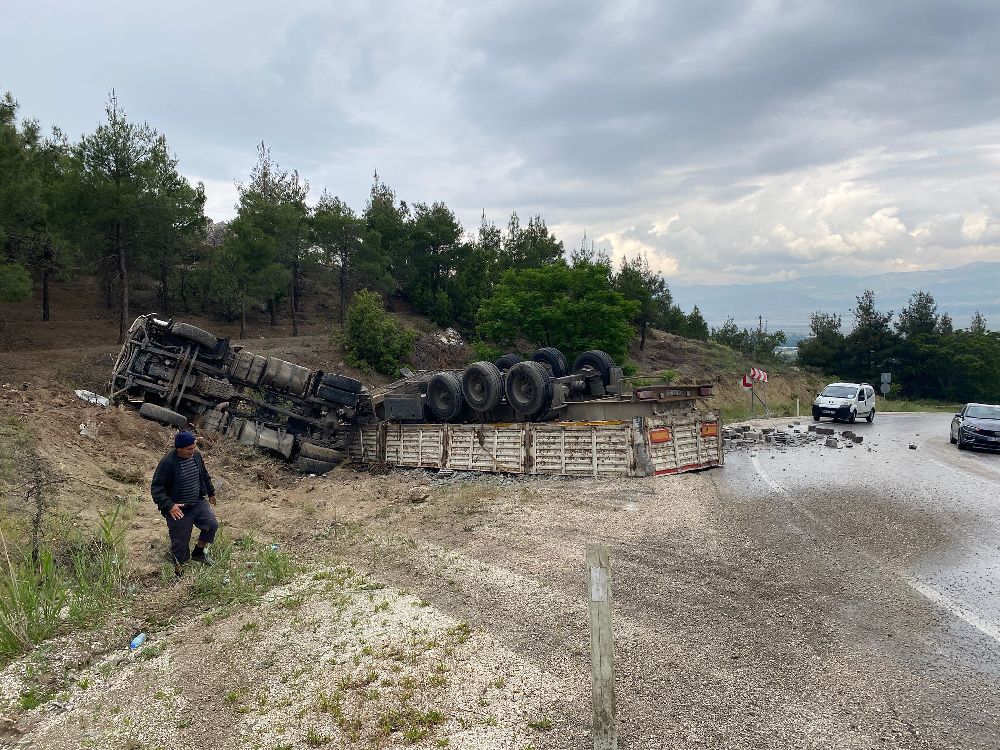 Burdur-Isparta Dostluk Yolu'nda yağış nedeniyle kayganlaşan yolda kontrolden çıkan tuğla yüklü tır şarampole devrildi. Kazada şans eseri yaralanan olmadı.