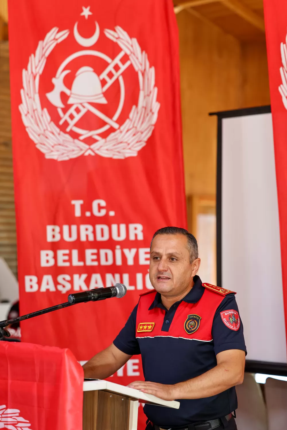 Konuşma yapan İtfaiye Müdürü Mehmet Ali Ballak “ Ülkemizde 1914 yılında Dergah-ı Ali Tulumbacı Ocağı ile başlayan bu serüvenin bugün 311. Yılını kutluyoruz. Yangından depreme, trafik kazalarından sele, her türlü afet anında kendi canını hiçe sayarak insanların en zor anlarında yardıma koşan sizler itfaiyecilerdir. Günümüzde gelişen teknoloji küresel etkenler ve iklimsel ısınmalara bağlı olarak meydana gelen afetlerin türü de maalesef derinleşmiştir, etkileri artmıştır. Bu nedenle itfaiyelerin sürekli kendilerini yenilemeleri, envanterlerini güçlendirmeleri gerekmektedir. Sayın Başkanımızın talimatı ve desteği doğrultusunda yaptığımız bir proje Avrupa Kalkınma Bankası tarafından kabul görmüş ve itfaiyemize 4 milyon euro yani 200 milyon liralık bir destek sağlanmıştır. Bizler bu destekle 8 yeni araç, 118 kalemde 2950 yeni ekipmanı itfaiyemize en kısa sürede kazandıracağız. Burdur Belediyesi itfaiye müdürlüğü araç, malzeme ve ekipman ve eğitimli gözü kara personeliyle sadece Burdur'un itfaiyesi değil herhangi bir afet anında tüm ülkenin umudu haline gelmiştir. Herhangi bir afet anında mesafe gözetilmeksizin ilk destek istenilen il Burdur konumundadır. Bu da her ne kadar kötü olsa da ama gerçekte bize gurur vericidir. Çünkü böyle bir ekibe sahip olmak herkese nasip olmaz. Bunda da Sayın Başkanımızın desteği şüphesizce yadsınamaz. Teşkilatımızın geldiği bu noktada vefakar, fedakar ve kahraman itfaiyecilerimize huzurumuzda ne kadar teşekkür etsem azdır. Ama en büyük teşekkürü bizi bir aile verdiği gibi gören, gittiğimiz her vakada bizde dertlenen, aynı ayazı çeken, aynı dumanı soluyan belediye başkanımıza, Burdurlu itfaiyecilerinin en büyük şansına şahsım, itfaiyem ve Türk İtfaiye Teşkilatı adına çok çok teşekkür eder, saygılar sunarım.” dedi