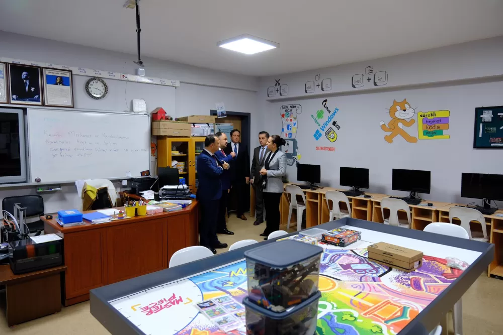 Vali Bilgihan, okullardaki atölyeleri de gezerek yürütülen uygulamalı eğitim faaliyetlerini takip etti. Öğrenci projeleri ve atölye kullanımına ilişkin öğretmenlerden ek bilgiler aldı.