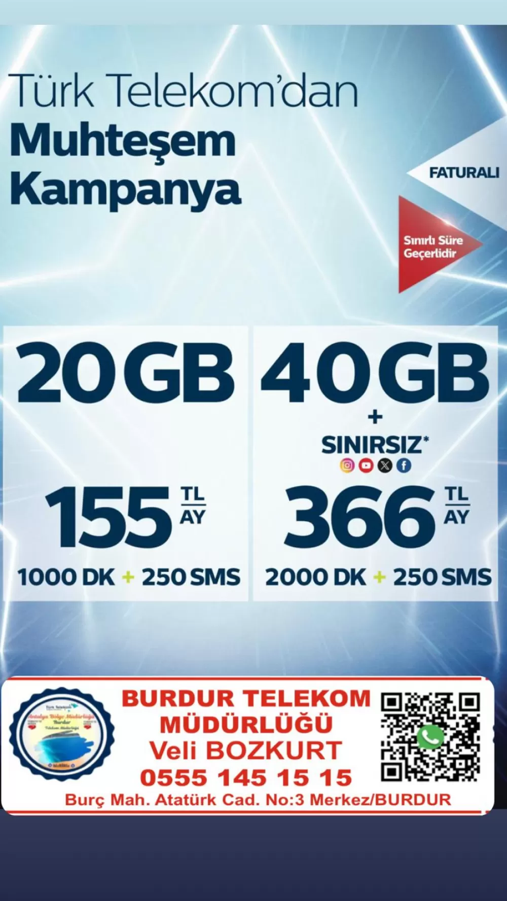 Türk Telekom, Burdur’daki kullanıcılarına özel yeni bir kampanya başlattı. Sınırlı süre geçerli olan bu kampanyada, hem internet hem de konuşma ihtiyacını karşılayacak avantajlı paketler dikkat çekiyor. Özellikle yüksek GB kullanımına ihtiyaç duyan öğrenciler ve gençler için cazip fiyatlı seçenekler öne çıkıyor.