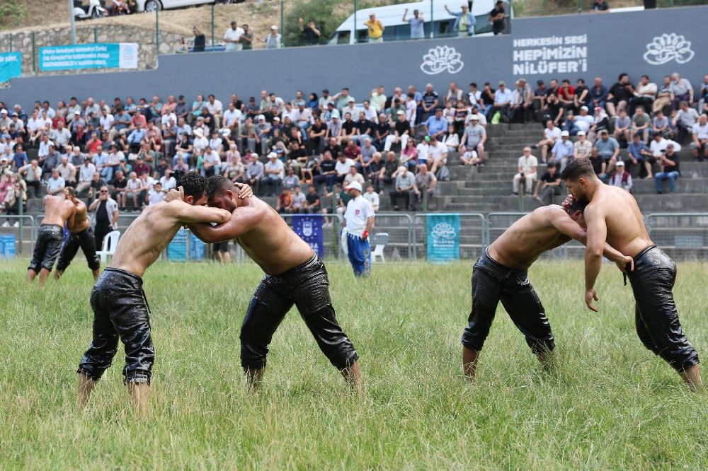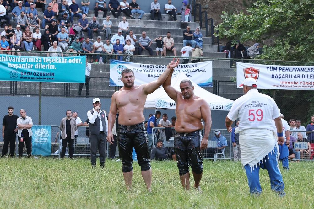 Bursa’da, 63. Tarihi Nilüfer Çalı Yağlı Güreşlerinin Başpehlivanı Mehmet Yeşil Yeşil oldu
