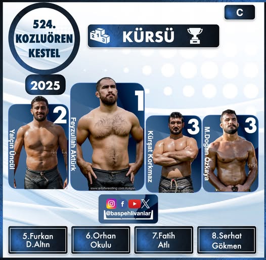 Bursa’nın Kestel ilçesinde 20 Temmuz 2025 Pazar günü düzenlenen 524. Kozluören Yağlı Güreşleri, büyük heyecana sahne oldu. Türkiye Geleneksel Güreşler Federasyonu (TGGF) takvimine göre sezonun 38. güreşi olan organizasyonda başpehlivanlık unvanını Feyzullah Aktürk kazandı.