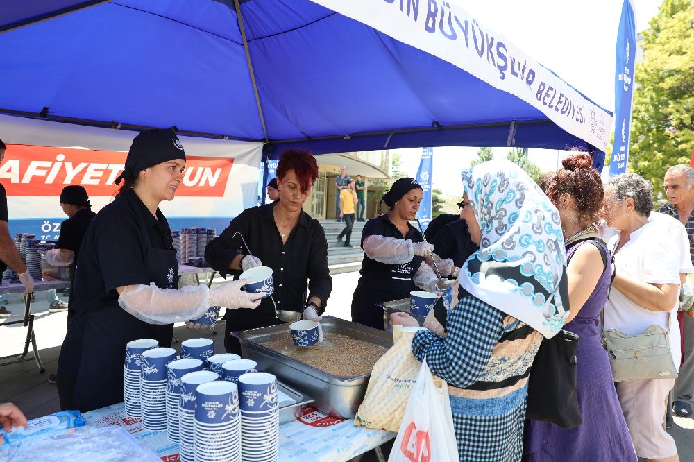 Muharrem ayının paylaşma ve dayanışma ruhunu yaşatmaya devam eden Aydın Büyükşehir Belediyesi, bu yıl da geleneksel aşure ikramını sürdürdü.