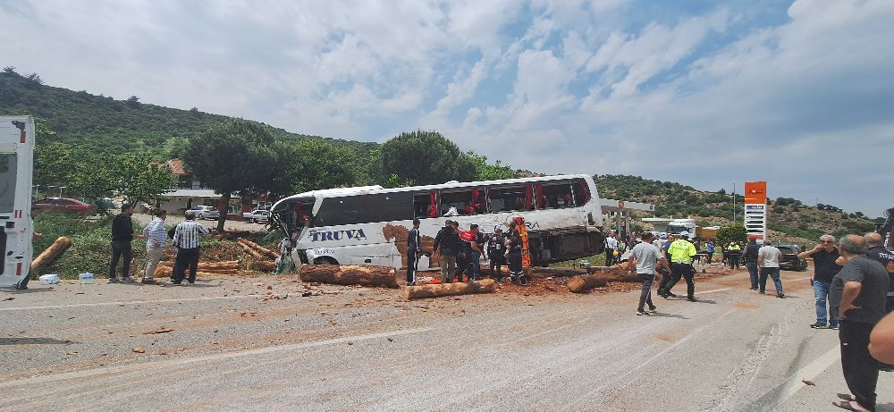 Çanakkale'de Truva Turizm'e ait yolcu otobüsü ile tomruk yüklü kamyon ve bir de otomobilin karıştığı kazada ilk belirlemelere göre 6 kişi hayatını kaybetti. Çok sayıda kişi yaralandı.