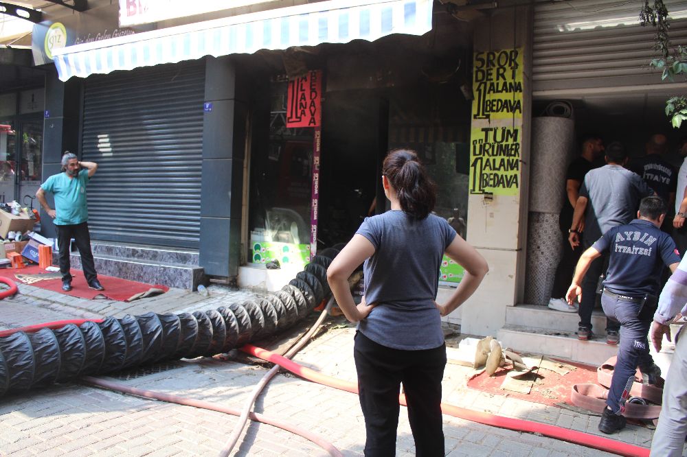 Yangın çarşıda panik oluştururken, iş yeri sahibi Aylin D. itfaiyenin söndürme çalışmalarını endişeli gözlerle takip etti. 20 yıllık emeklerinin küle dönüşmesine üzülen Aylin D.'yi komşu esnaf teselli etmeye çalıştı. Yangının çıkış nedeninin belirlenebilmesi için çalışma başlatıldı.