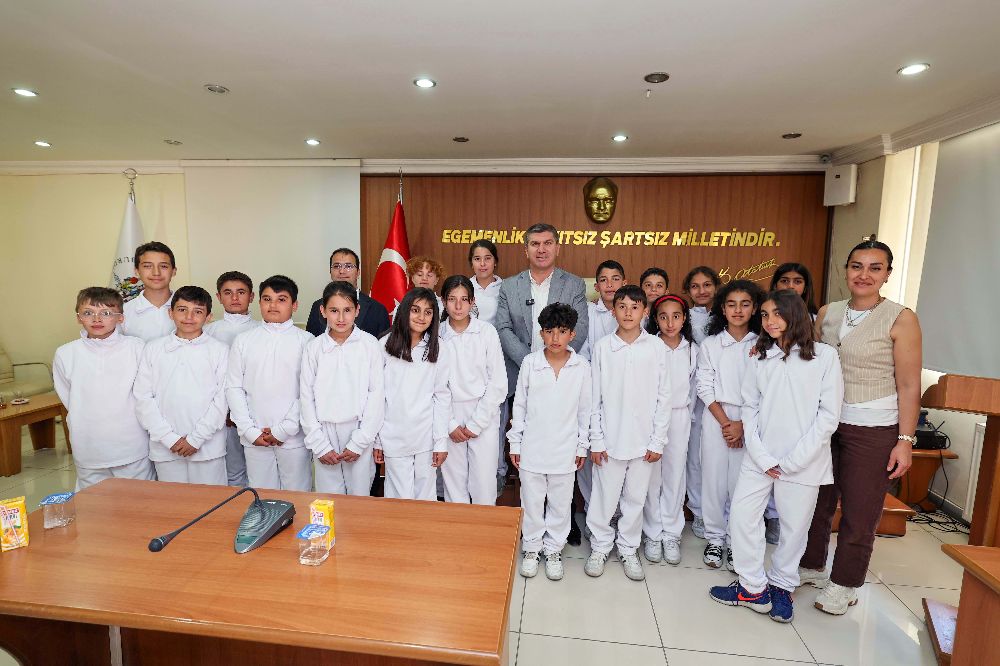 Burdur Gölü’nün kuruma tehlikesine dikkat çekmek amacıyla klip hazırlayan Yazıköy Ortaokulu öğretmen ve öğrencileri, Burdur Belediye Başkanı Ali Orkun Ercengiz’i makamında ziyaret etti.