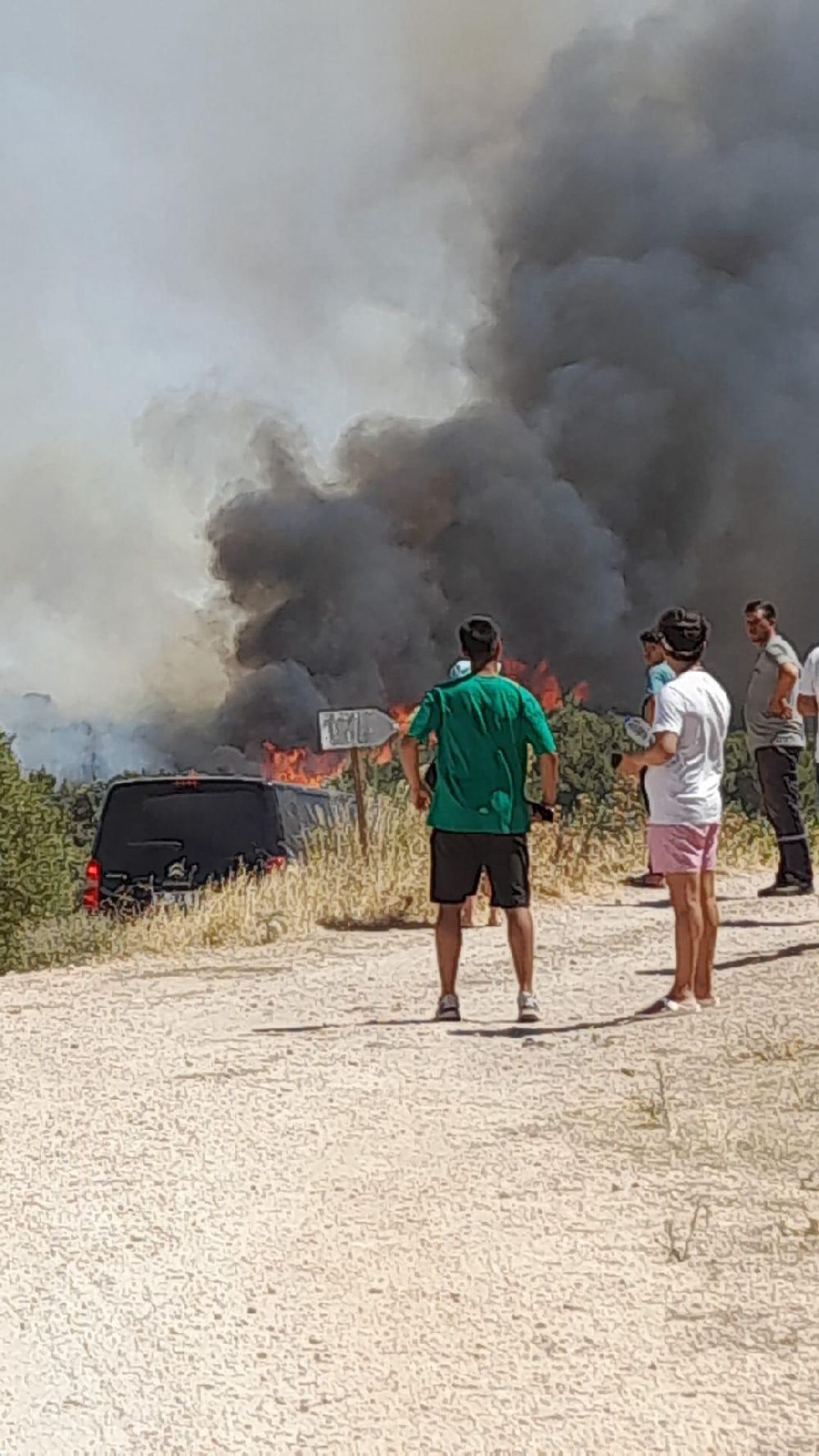 İzmir'in Çeşme ilçesinde otluk alanda öğleden sonra çıkan yangın, rüzgarın da etkisiyle geniş bir alana yayıldı. Havadan ve karadan alevlere müdahele edilirken, bölgedeki bazı yazlık evlerin tedbiren boşaltıldığı bildirildi.