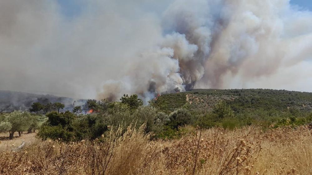Önce Menderes, ardından Seferihisar'da günlerdir orman yangınları ile boğuşan İzmir'in bu defa ünlü tatil merkezi Çeşme ilçesinde yangın çıktı. Ildır Mahallesi'nde bugün saat 13.40'da ziraat alanında çıkan ve ormana sirayet eden yangına ilk müdahale saat 13.55'de yapıldı. İzmir Orman Bölge Müdürlüğüne ait 5 uçak ve 18 helikopter havadan alevleri söndürmeye çalışırken, karadan da 36 arazöz, 13 su ikmal aracı ve 4 dozer ile ekipler alevlerin daha da yayılmaması için büyük çaba gösteriyor. Bu arada gece gündüz Seferihisar bölgesinde hem yangınla mücadele eden hem arama kurtarma faaliyeti yürüten gönüllü ekiplerden bazılarının Çeşme ilçesine hareket ettiği öğrenildi. Zeytin ağaçlarının da bulunduğu bölgeden gökyüzüne yükselen dumanlar, kilometrelerce öteden görülebiliyor. Öte yandan, bölgedeki bazı yazlık evlerin tedbiren boşaltıldığı bildirildi.