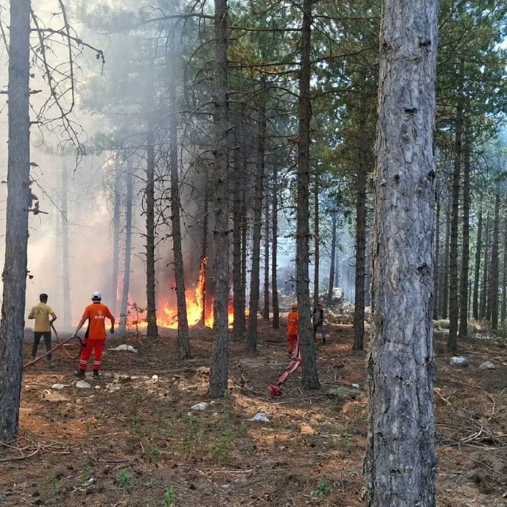 Aydın'ın Çine ilçesinde ormanlık alanda meydana gelen yangını kontrol altına almak için ekipler havadan ve karadan müdahaleye başladı.