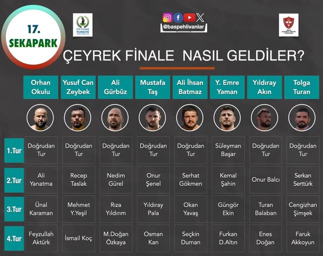 Çeyrek finale kalan 4 isim, daha önce Kırkpınar Başpehlivanlığı unvanını kazanmış tecrübeli pehlivanlar.