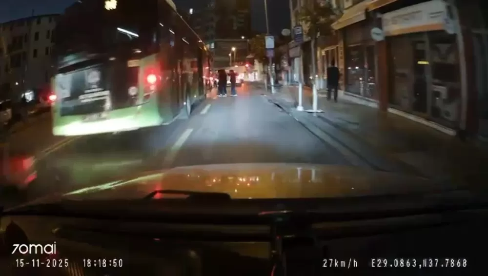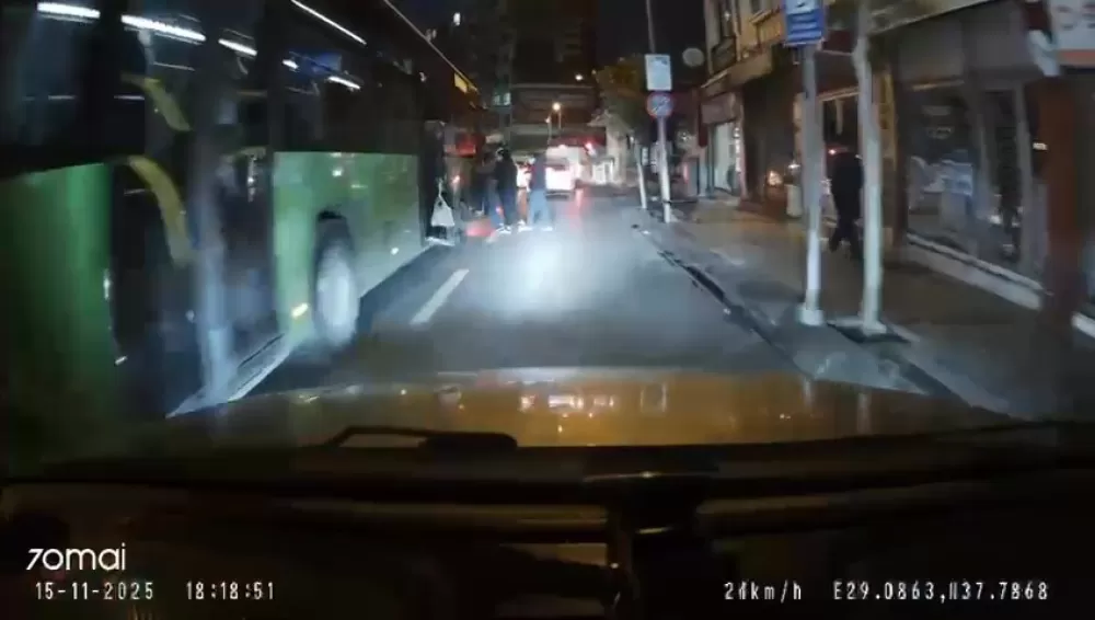 Denizli Büyükşehir Belediyesine ait halk otobüsü durağa yanaşmadan sol şeritte yolcu indirme ve bindirme yaptığı esnada sağ şeritten ilerleyen sürücünün dikkati kazayı önledi. Araç kamerasına yansıyan o anlarda yol ortasında otobüsün kapılarının açılmasıyla inen yolcuya az kalsın otomobil çarpıyordu.