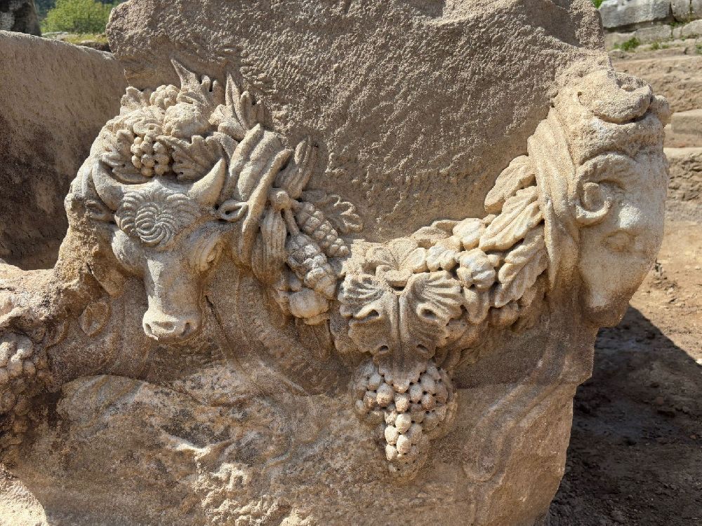 Pamukkale Üniversitesi (PAÜ) İnsan ve Toplum Bilimleri Fakültesi (İTBF) Arkeoloji Bölümü öğretim üyesi Prof. Dr. Bilal Söğüt Başkanlığında yürütülen arkeolojik kazı ve restorasyon çalışmaları kapsamında Stratonikeia Antik Kenti’nde girlandlı (meyve, çiçek ve yapraklardan oluşan çelenk), 2 bin yıllık bir lahit mezar bulundu.