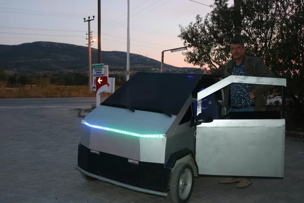 Denizli’de yaşayan Rüştü Bal, Tesla’nın dünyaca ünlü modeli Cybertruck’tan ilham alarak kendi elektrikli pick-up aracını yaptı. Tamamını 75 bin TL bütçeyle ve hurda malzemeleri geri dönüştürerek, kendi evinin bahçesinde geliştiren Bal, Elon Musk’a adeta "yerli rakip" çıktı.