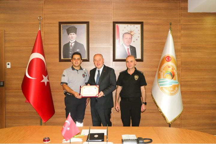 26-30 Haziran 2025 tarihleri arasında kutlanan Özel Güvenlik Günü ve Haftası ile Kaan Uygulaması kapsamında, görevlerini büyük bir özveri ve gayretle sürdüren 10 özel güvenlik görevlisine, Denizli Valisi Ömer Faruk Coşkun ve İl Emniyet Müdürü Yavuz Sağdıç tarafından teşekkür belgesi takdim edildi.
