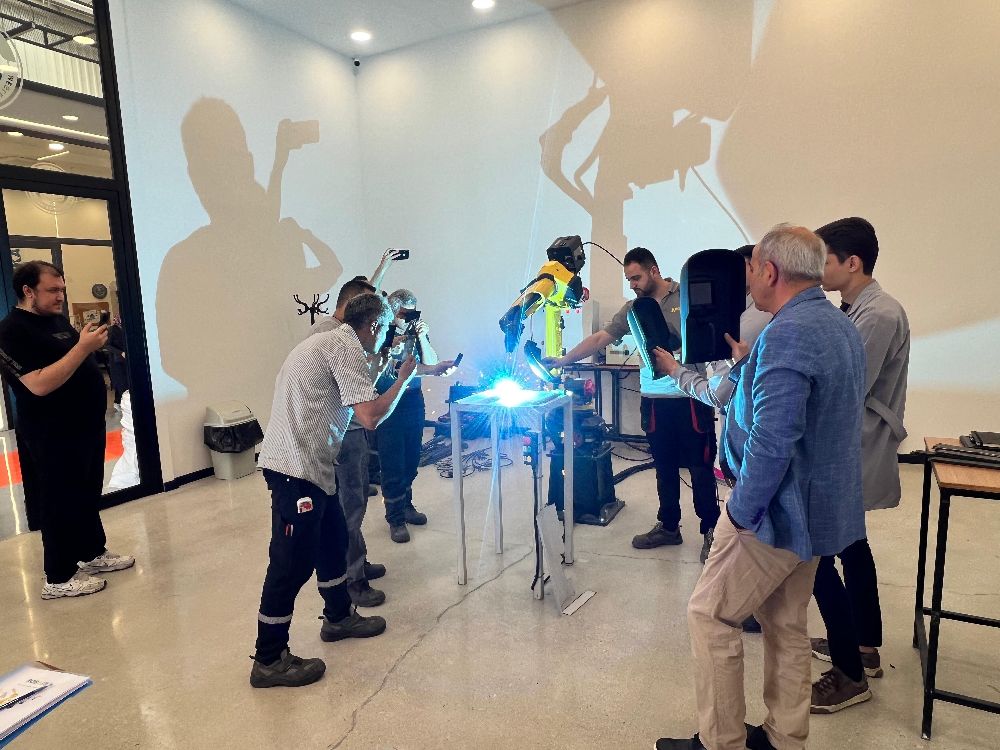 Kaynak atölyesinde kurulumu tamamlanan 6 eksen Fanuc 100id kaynak robotu, 4 adet Gazaltı Kaynak makinesi, 1 adet TİG Kaynak Makinesi, 5 Adet camlı kaynak masası ve 5 adet kaynak siperliği ile kursiyerlerin eğitimine uygulamalı çalışmalar ile katkıda bulunulması hedefleniyor.