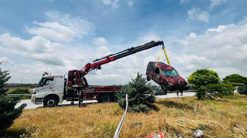 Afyonkarahisar’da kontrolden çıkarak orta refüje devrilen hafif ticari araçta 2 kişi yaralandı.