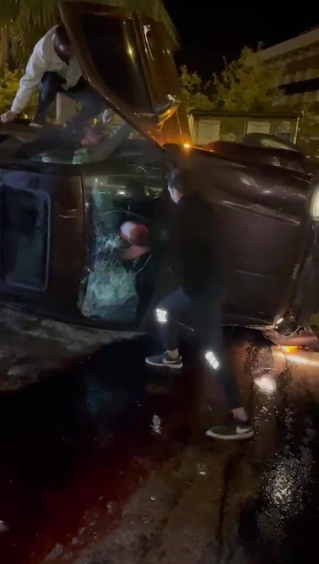 Bir vatandaşın cep telefonuyla kayda aldığı görüntülerde ise devrilerek yan yatan otomobilde bulunan 2 kişinin çıkarılması için yangın tüpüyle gelen bir otel görevlisinin aracın camını yangın tüpüyle kırması, bu sırada otomobilin üzerine çıkan bir kişinin otomobilin kapısını açarak araçtakilerin çıkmasına yardım etme anları yer aldı. Otomobilde bulunan ve kazayı hafif sıyrıklarla atlatan 2 kişinin araçtan çıktıktan sonra olay yerinden ayrıldığı öğrenildi.