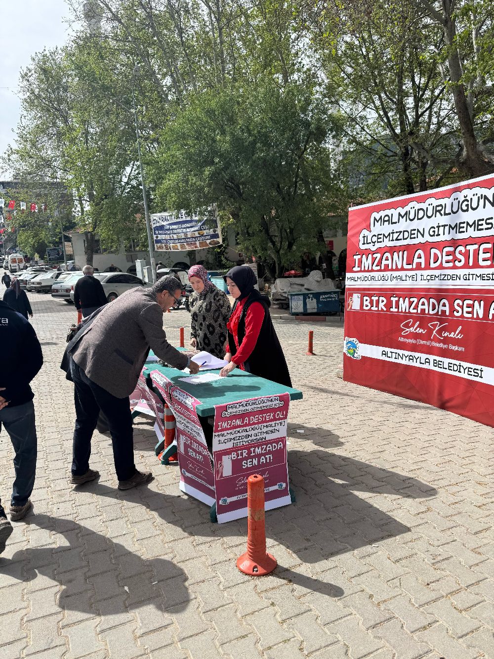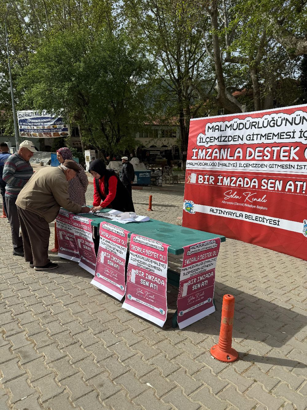 Altınyayla Belediye Başkanı Selen Kınalı, ilçede hizmet veren Malmüdürlüğü’nün kapatılmaması için başlatılan kampanyaya vatandaşların yoğun ilgi gösterdiğini, standa gelerek vatandaşların imza ile destek olduğunu söyledi.