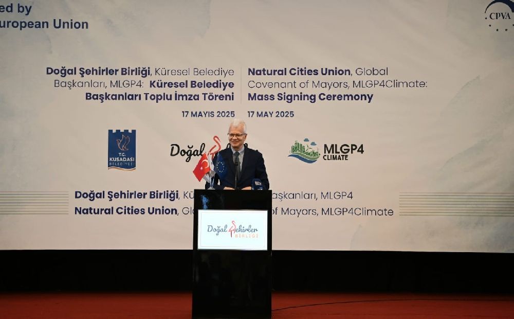 İmza töreninde konuşan Doğal Şehirler Birliği ve Kuşadası Belediye Başkanı Ömer Günel, "Bugün burada, insanlık olarak karşı karşıya olduğumuz en büyük ortak sınavlardan biri için, iklim değişikliğiyle mücadelede kararlı bir irade ortaya koymak üzere bir aradayız. İklim krizi, sadece küresel ölçekte ele alınması gereken bir mesele değil, aynı zamanda yerelden başlayan bir sorumluluk meselesidir. Çünkü çözümün anahtarı, yaşadığımız şehirlerde, mahallelerde, yerel yönetimlerin vizyon ve kararlılığıyla şekillenmektedir. İşte bu yüzden bugün burada toplanmamız çok anlamlı ve önemli. Doğal Şehirler Birliği üyesi belediyelerin Küresel Belediye Başkanları Sözleşmesi’ne hep birlikte imza atmış olması çok önemli. Bu sadece sembolik bir tören değil, ortak irademizin, birlikte hareket etme kararlılığımızın ve doğaya, yaşanabilir kentlere olan bağlılığımızın güçlü bir ifadesidir. Doğal Şehirler Birliği çatısı altında bu adımın atılması, yalnızca Türkiye’de değil, bölgesel ve küresel ölçekte yerel yönetimlerin iklim mücadelesine verdiği önemin altını bir kez daha çizmektedir. Bu adımın bir Avrupa Birliği projesiyle destekleniyor olması da, yerelden küresele uzanan iş birliğinin ve dayanışmanın en somut göstergesidir" diye konuştu.