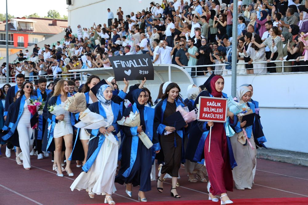 Düzce Üniversitesi tarafından düzenlenen 2024-2025 Akademik Yılı mezuniyet törenlerinin 4. gününde; Akçakoca Bey Siyasal Bilgiler Fakültesi, Akçakoca Turizm İşletmeciliği ve Otelcilik Yüksekokulu, Sağlık Bilimleri Fakültesi ve Tıp Fakültesi öğrencileri mezuniyet gururu yaşadı.