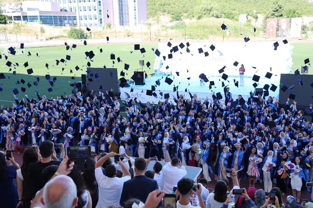 Düzce Üniversitesi Stadyumu’nda gerçekleştirilen törene; Rektör Yardımcıları Prof. Dr. İlhan Genç ve Prof. Dr. Ali Öztürk, Genel Sekreter Nihat Yıldız, akademik birim yöneticileri, öğretim üyeleri, öğrenciler ile aileleri katıldı.