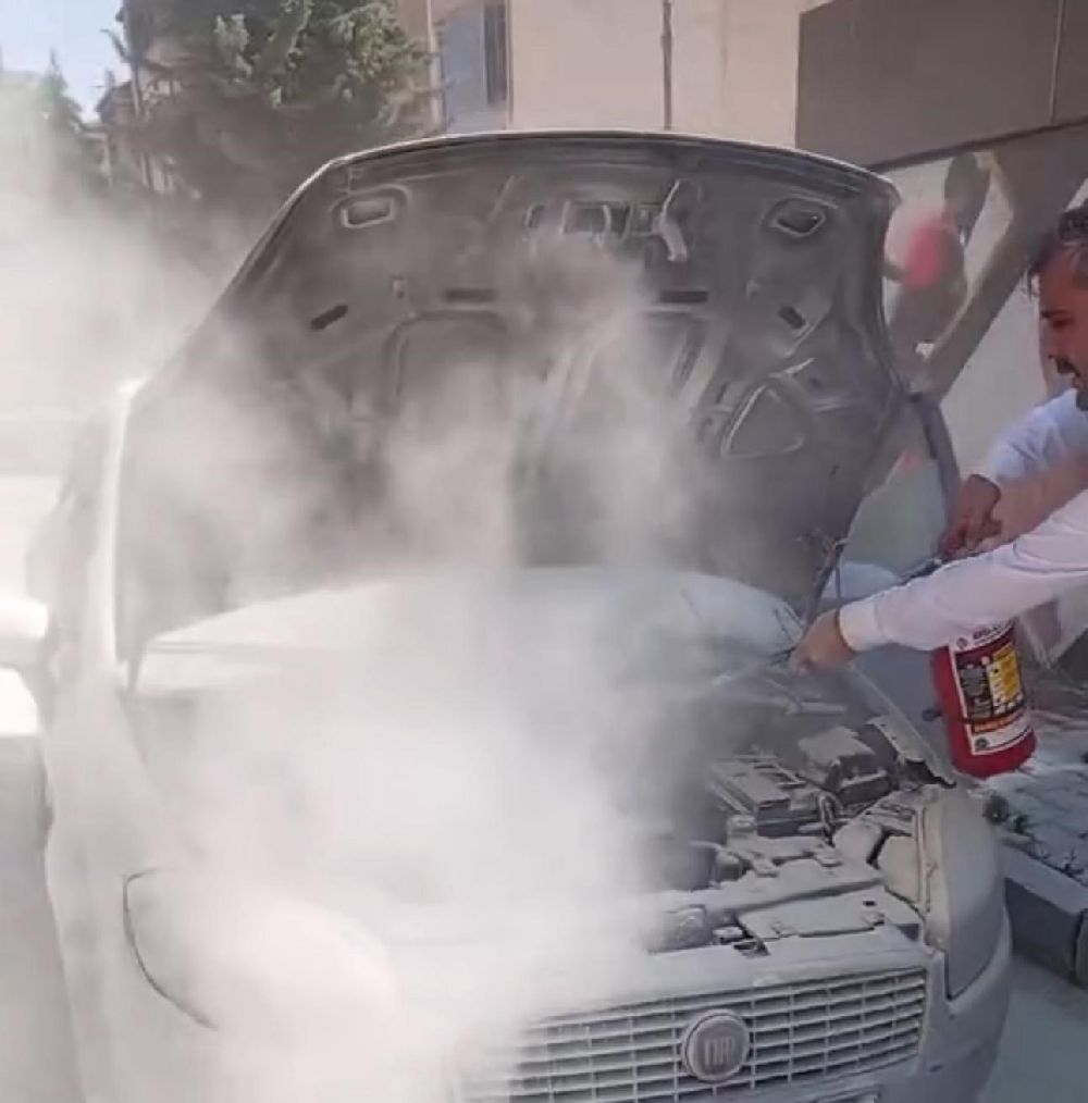 Elazığ’da sabah saatlerinde, park halindeki otomobilde çıkan yangının güvenlik kamerası görüntüleri ortaya çıktı. Görüntülerde, aracın altından alevlerin çıktığı ve dumanları fark eden kurs merkezi çalışanlarının hızla yangına müdahale ettiği anlar yer alıyor.