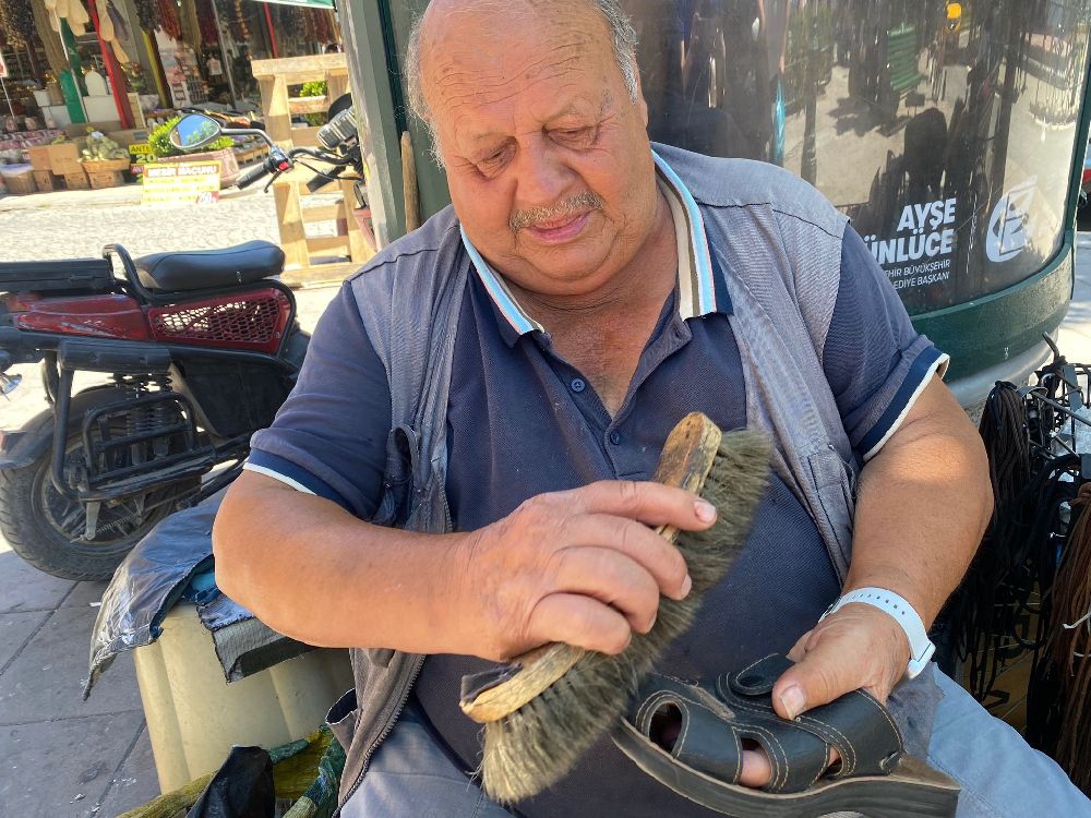 Eskişehir'de uzun yıllar belediyede şoförlük yapan 75 yaşındaki Selahattin İnce, emekli olduktan sonra çalışmaya devam edip çocukluk mesleği olan ayakkabı boyacılığına başladı.