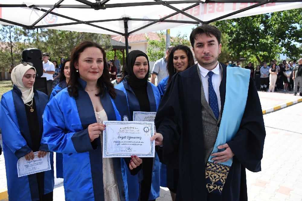 Dönem birincisi olan Sağlık Kurumları İşletmeciliği Programı öğrencisi Kevser Çaka yaptığı konuşmanın ardından ismini mezuniyet kütüğüne çaktı. Daha sonra bölümlerinde dereceye giren öğrencilere başarı belgeleri takdim edildi.