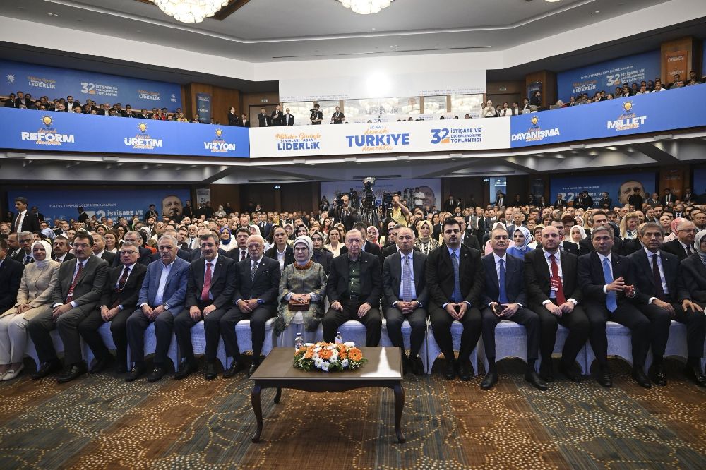 "AK Parti 32. İstişare ve Değerlendirme Toplantısı'nın, aziz milletimizin istikbali adına hayırlara vesile olmasını diliyorum. Milletin sinesinden doğmuş bir hareket olarak AK Parti, kararlarını ortak akılla, yürüyüşünü istişareyle şekillendiren bir dava şuuru taşımaktadır. Bu kutlu yürüyüş, annelerin yüreğini dağlayan acıların dindiği, evlatların umutla büyüdüğü, terörün karanlığına bir daha dönmemek üzere son verildiği bir Türkiye içindir. Birlik, dirlik ve kardeşlik içinde nice güçlü yarınlara ulaşmak dileğiyle."