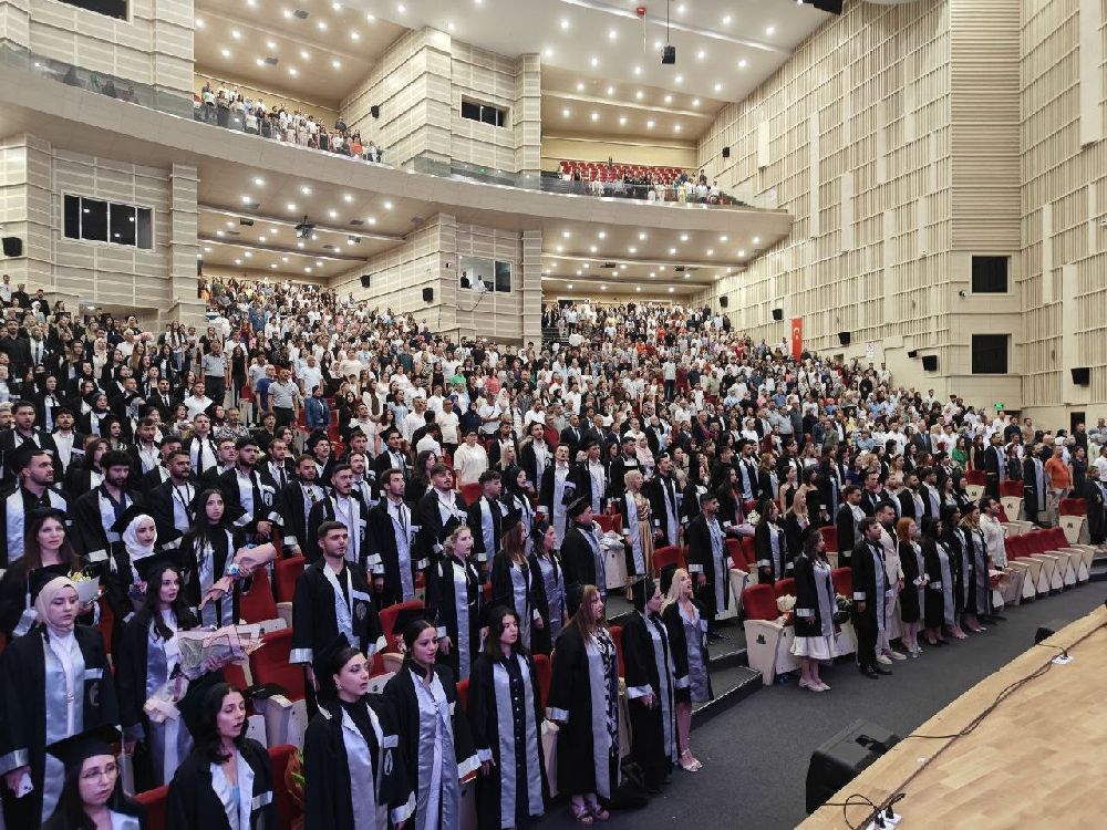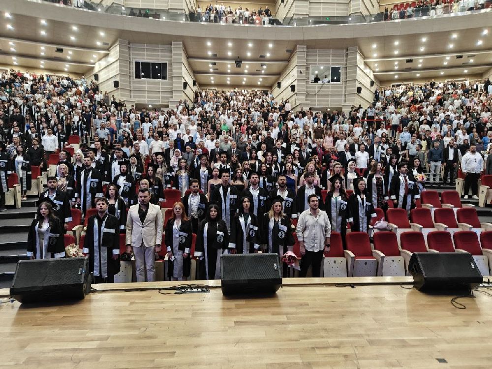 Konuşmaların ardından fakülte birincisinin mezuniyet kütüğüne plaket çakmasından sonra protokol üyeleri tarafından dereceye giren öğrencilere diplomaları verildi.