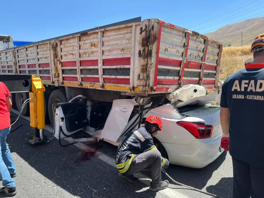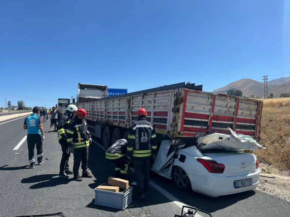 Erzurum’da meydana gelen trafik kazasında, park halindeki tıra arkadan çarpan ve dorsesinin altına giren otomobilde bulunan sürücü hayatını kaybetti.