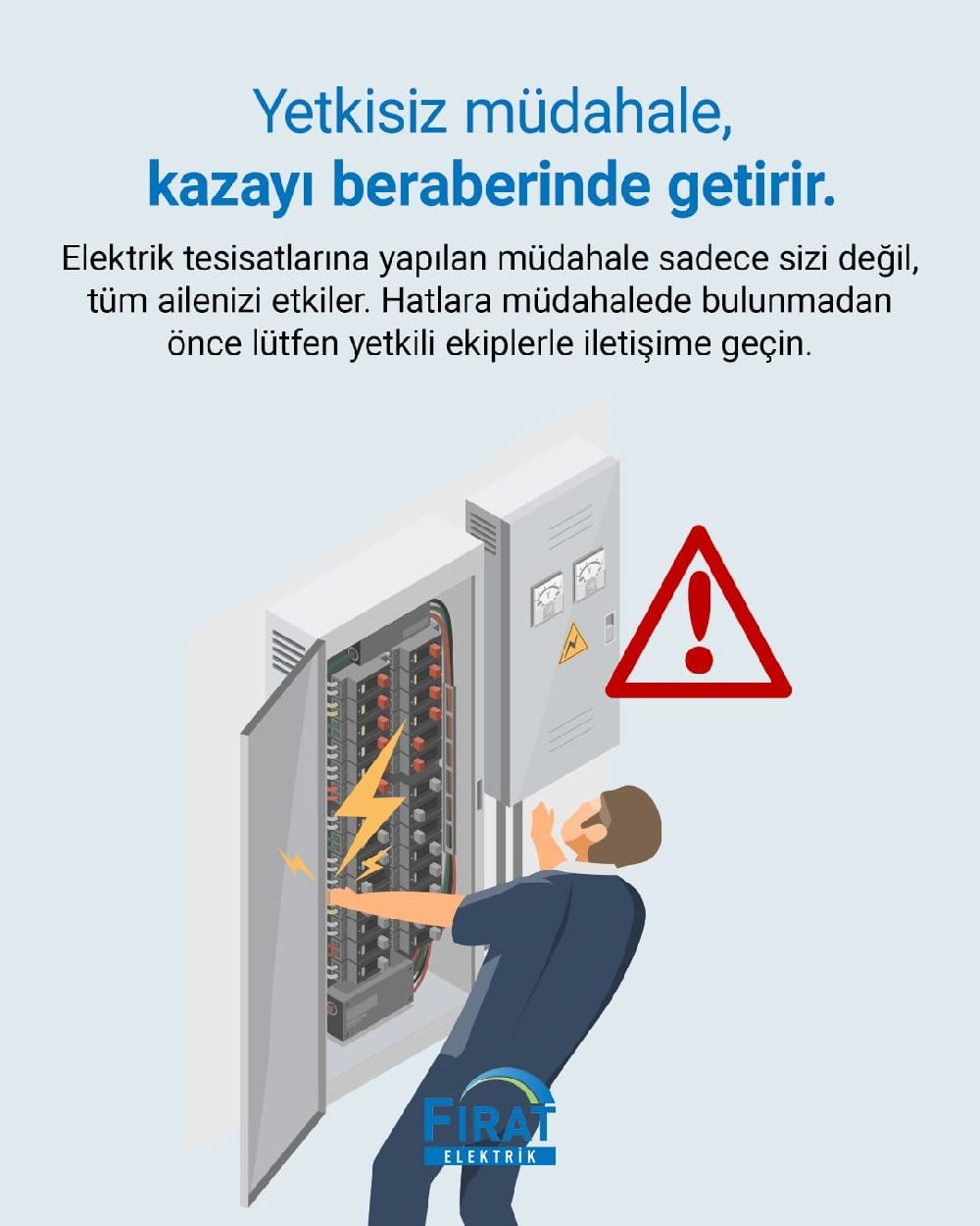 Fırat EDAŞ, enerji nakil hatları, dağıtım merkezleri ve trafolara yapılan her türlü izinsiz ve ehliyetsiz müdahalenin, müdahalede bulunan kişiler için hayati tehlike oluşturduğunu altını çizerek hatırlattı. Şirketten yapılan açıklamada, "Enerji tesislerimiz yüksek gerilim taşımaktadır. Bu hatlara ve ekipmanlara yetkisiz kişilerin yaklaşması, tırmanması veya herhangi bir şekilde müdahale etmeye çalışması, ağır yaralanmalarla ve daha ciddi tehlikeli sonuçlar doğurabilir. Unutulmamalıdır ki, bu tür bilinçsiz eylemler aynı zamanda bölgesel enerji kesintilerine ve ciddi maddi hasarlara da yol açabilmektedir" ifadelerine yer verildi.