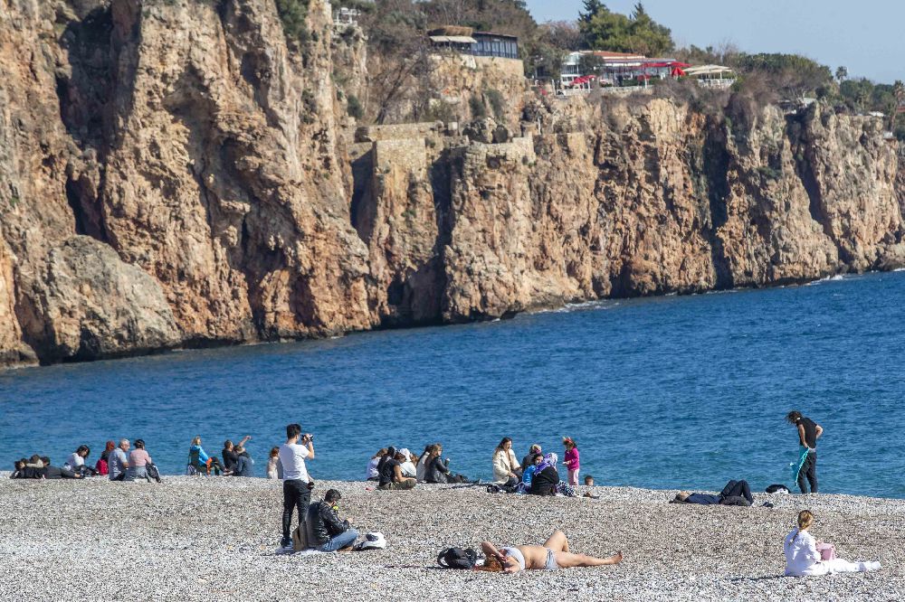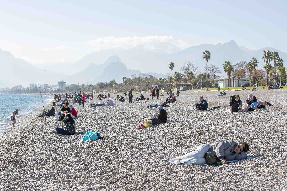 Antalya’da kışın ortasında hava sıcaklığı 19 dereceyi ulaşınca sahillerde yoğunluk oluştu. Güneşli havayı görenler denize girdi, bol bol güneşlendi. Sahilde hem deniz hem güneş keyfi yapan bir vatandaş, “Bize kış gelmiyor. Fotoğraflarımı gören akrabalarım kıskanıyor. Antalya çok güzel bir memleket” dedi.