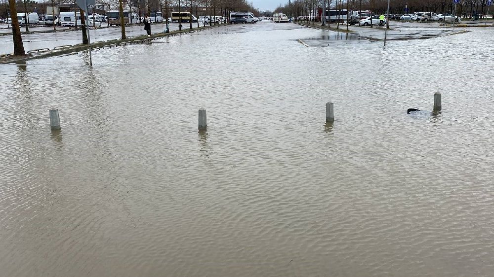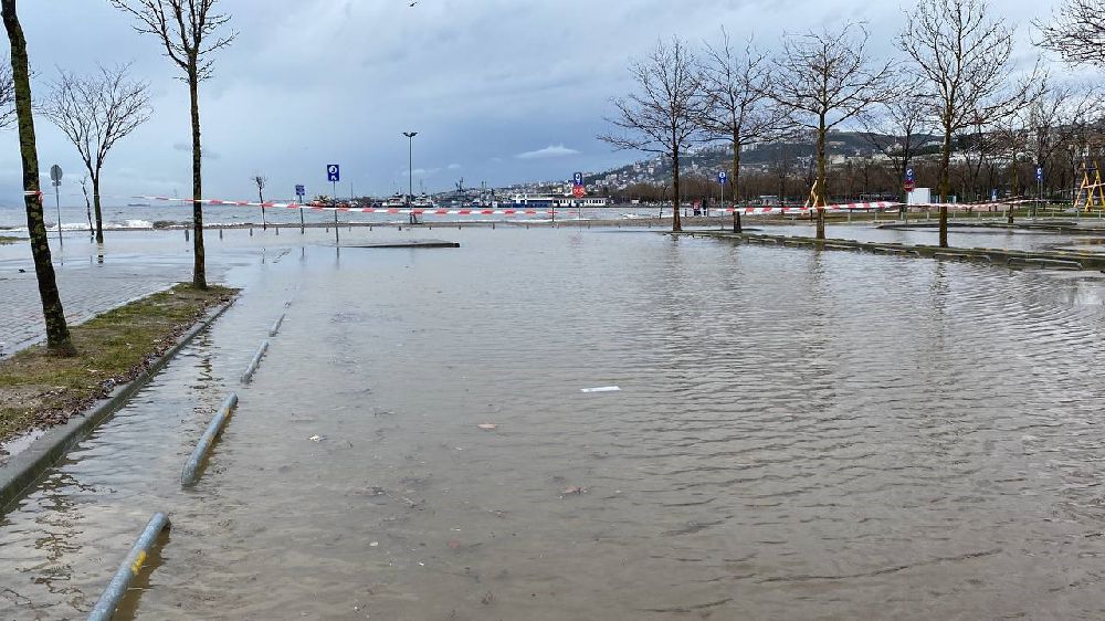 Kocaeli'nin İzmit ilçesinde etkili olan kuvvetli fırtına sebebiyle deniz taştı, sahil şeridi ve otopark su ile doldu.