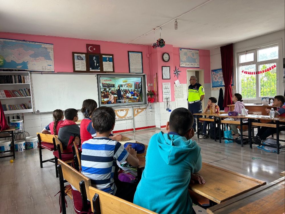 Trafikte saygılı olmanın da bir toplumsal görev olduğu anlatılan seminerde, öğrencilere eğitim sonrası hikâye kitapları dağıtıldı.