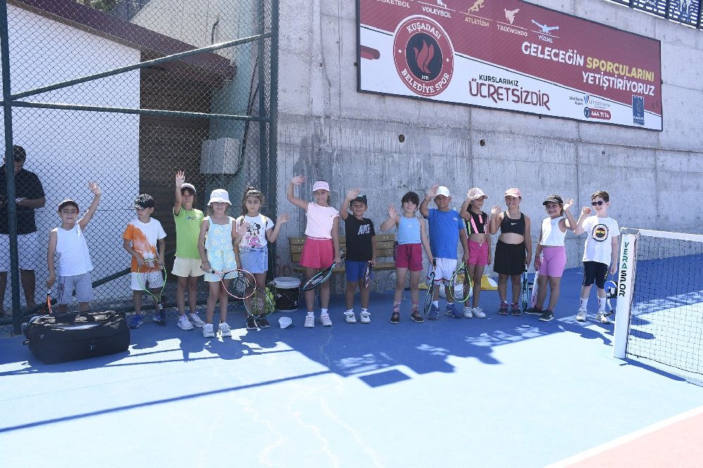 Kuşadası Belediyesi tarafından kente kazandırıldığı günden bu yana, tenis tutkunları tarafından sıkça ziyaret edilen Kuşadası Tenis Kulübü, çocuklar için eğitimlere başladı. Kuşadası Belediyespor iş birliği ile düzenlenen tenis kursunun ilk gününde çocukların heves ve heyecanları görülmeye değerdi.