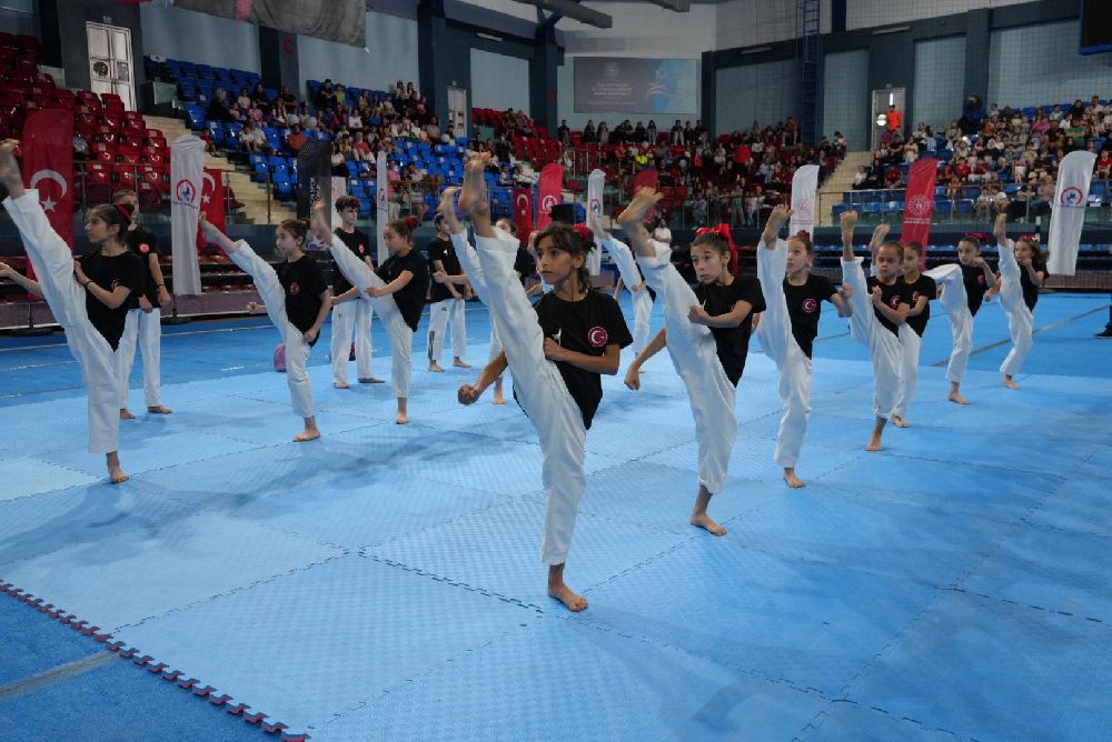Konuşmalarının ardından bisiklet denge, taekwondo, halk oyunları, cimnastik ve güreş gibi çeşitli gösterilerle renklendi.