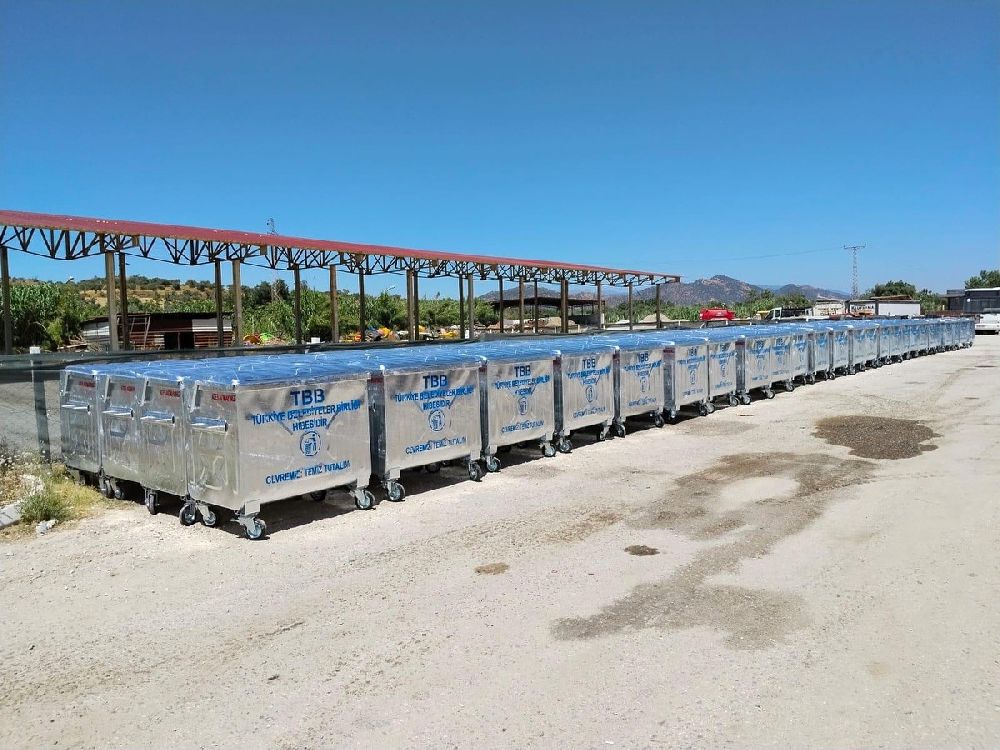 Germencik Belediyesi temizlik hizmetlerinin kalitesini artırmak amacıyla Türkiye Belediyeler Birliği (TBB) tarafından gönderilen 100 adet çöp konteynerini teslim alarak dağıtımına başladı.