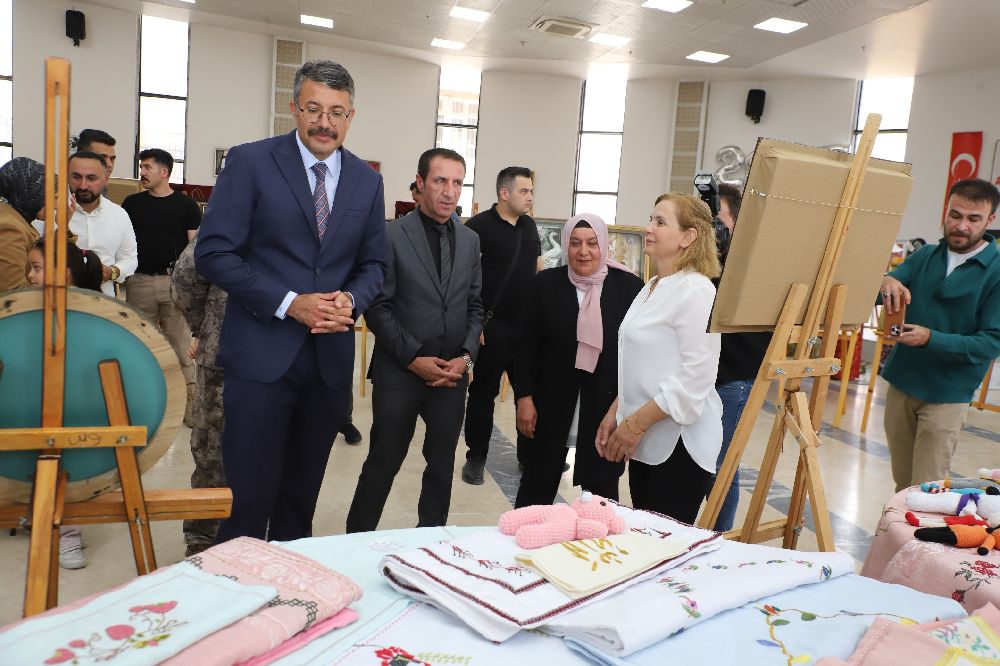 Sergide emeği geçen kadın kursiyerlere ve eğitmenlere belgeleri Vali Çelik ve protokol üyeleri tarafından takdim edildi. El emeği göz nuru ürünlerin yer aldığı yılsonu sergisi yoğun ilgi gördü.